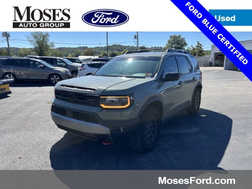 This 2026 Honda Passport is well equipped with the following equipment...Passport TrailSport Elite Blackout, Ford Blue Advantage: Blue Certified Certified, 4D Sport Utility, 3.5L V6 DOHC 24V, 10-Speed Automatic, AWD, Gp, Gray Leather, 12 Speakers, 4-Wheel Disc Brakes, ABS brakes, Adaptive Cruise Control: Adaptive Cruise Control (ACC) with Low-Speed Follow, Air Conditioning, Alloy wheels, Apple CarPlay/Android Auto, Auto High-beam Headlights, Auto-dimming door mirrors, Auto-dimming Rear-View mirror, Automatic temperature control, Blind Spot Information (BSI) System warning, Brake assist, Compass, Delay-off headlights, Driver door bin, Driver vanity mirror, Driver's Seat Mounted Armrest, Dual front impact airbags, Dual front side impact airbags, Electronic Stability Control, Emergency communication system: HondaLink, Exterior Parking Camera Rear, Four wheel independent suspension, Front anti-roll bar, Front Bucket Seats, Front Center Armrest, Front dual zone A/C, Front fog lights, Front reading lights, Fully automatic headlights, Heated & Ventilated Front Bucket Seats, Heated door mirrors, Heated front seats, Heated rear seats, Heated steering wheel, HVAC memory, Illuminated entry, Knee airbag, Lane departure: Lane Keeping Assist System (LKAS) active, Leather steering wheel, Low tire pressure warning, Memory seat, Navigation system: Google Maps, Occupant sensing airbag, Outside temperature display, Overhead airbag, Overhead console, Panic alarm, Passenger door bin, Passenger seat mounted armrest, Passenger vanity mirror, Perforated Leather Seat Trim, Power door mirrors, Power driver seat, Power Liftgate, Power moonroof, Power passenger seat, Power steering, Power windows, Radio data system, Radio: Bose Premium Sound System w/12 Speakers, Rain sensing wipers, Rear air conditioning, Rear anti-roll bar, Rear reading lights, Rear seat center armrest, Rear window defroster, Rear window wiper, Remote keyless entry, Security system, Speed control, Speed-sensing steering, Split folding rear seat, Spoiler, Steering wheel mounted audio controls, Tachometer, Telescoping steering wheel, Tilt steering wheel, Traction control, Trip computer, Turn signal indicator mirrors, Variably intermittent wipers, Ventilated front seats, and Wheels: 18" HPD Black Alloy Want your customer experience to be as unrivaled as your next BMW? Discover the Difference at Moses BMW where friendly, professional associates simplify your buying experience and provide real value. See our Google and Cars.com reviews to hear why even out-of-state customers say they will drive over 500 miles again to experience our friendly and fast service. Call (304)722-4900 today to set your VIP appointment with one of our experienced managers