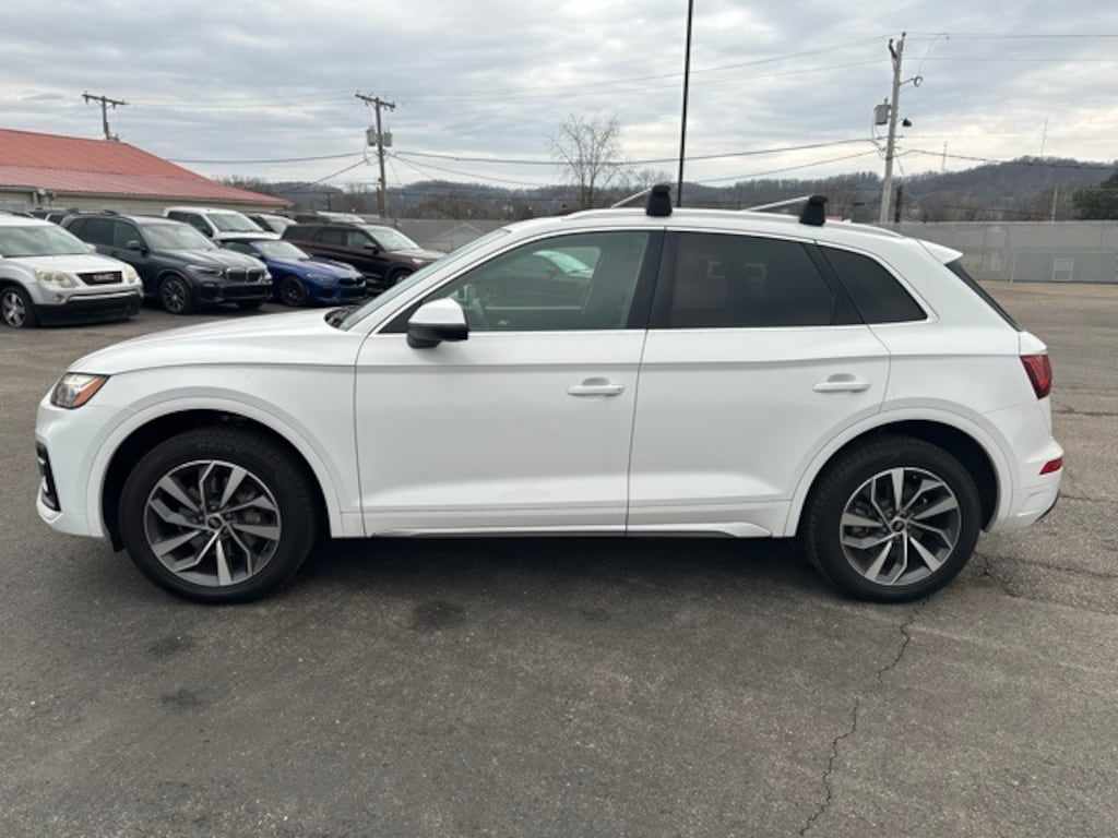 This 2021 Audi Q5 is well equipped with the following equipment...Q5 45 Premium Plus quattro, 4D Sport Utility, 2.0L Turbocharged, 7-Speed Automatic S tronic, quattro, White, Black Leather, 10 Speakers, 4-Wheel Disc Brakes, 5.302 Axle Ratio, ABS brakes, Air Conditioning, Alloy wheels, AM/FM radio, Auto High-beam Headlights, Auto-dimming Rear-View mirror, Automatic temperature control, Brake assist, Bumpers: body-color, Compass, Delay-off headlights, Driver door bin, Driver vanity mirror, Dual front impact airbags, Dual front side impact airbags, Electronic Stability Control, Emergency communication system: Audi connect CARE, Exterior Parking Camera Rear, Four wheel independent suspension, Front anti-roll bar, Front Bucket Seats, Front Center Armrest, Front dual zone A/C, Front fog lights, Front reading lights, Garage door transmitter: HomeLink, Genuine wood console insert, Genuine wood dashboard insert, Genuine wood door panel insert, Heated 8-Way Power Front Bucket Seats, Heated door mirrors, Heated front seats, Illuminated entry, Leather Seating Surfaces, Leather Shift Knob, Low tire pressure warning, Occupant sensing airbag, Outside temperature display, Overhead airbag, Overhead console, Panic alarm, Passenger door bin, Passenger vanity mirror, Power door mirrors, Power driver seat, Power Liftgate, Power passenger seat, Power steering, Power windows, Radio data system, Radio: Audi Sound System, Rain sensing wipers, Rear air conditioning, Rear anti-roll bar, Rear fog lights, Rear reading lights, Rear seat center armrest, Rear window defroster, Rear window wiper, Remote keyless entry, Roof rack, Security system, Speed control, Speed-sensing steering, Speed-Sensitive Wipers, Split folding rear seat, Spoiler, Steering wheel mounted audio controls, Tachometer, Telescoping steering wheel, Tilt steering wheel, Traction control, Trip computer, Turn signal indicator mirrors, Variably intermittent wipers, and Wheels: 18" 5-Arm-Star Design Want your customer experience to be as unrivaled as your next BMW? Discover the Difference at Moses BMW where friendly, professional associates simplify your buying experience and provide real value. See our Google and Cars.com reviews to hear why even out-of-state customers say they will drive over 500 miles again to experience our friendly and fast service. Call (304)722-4900 today to set your VIP appointment with one of our experienced managers to help you find your perfect match today.