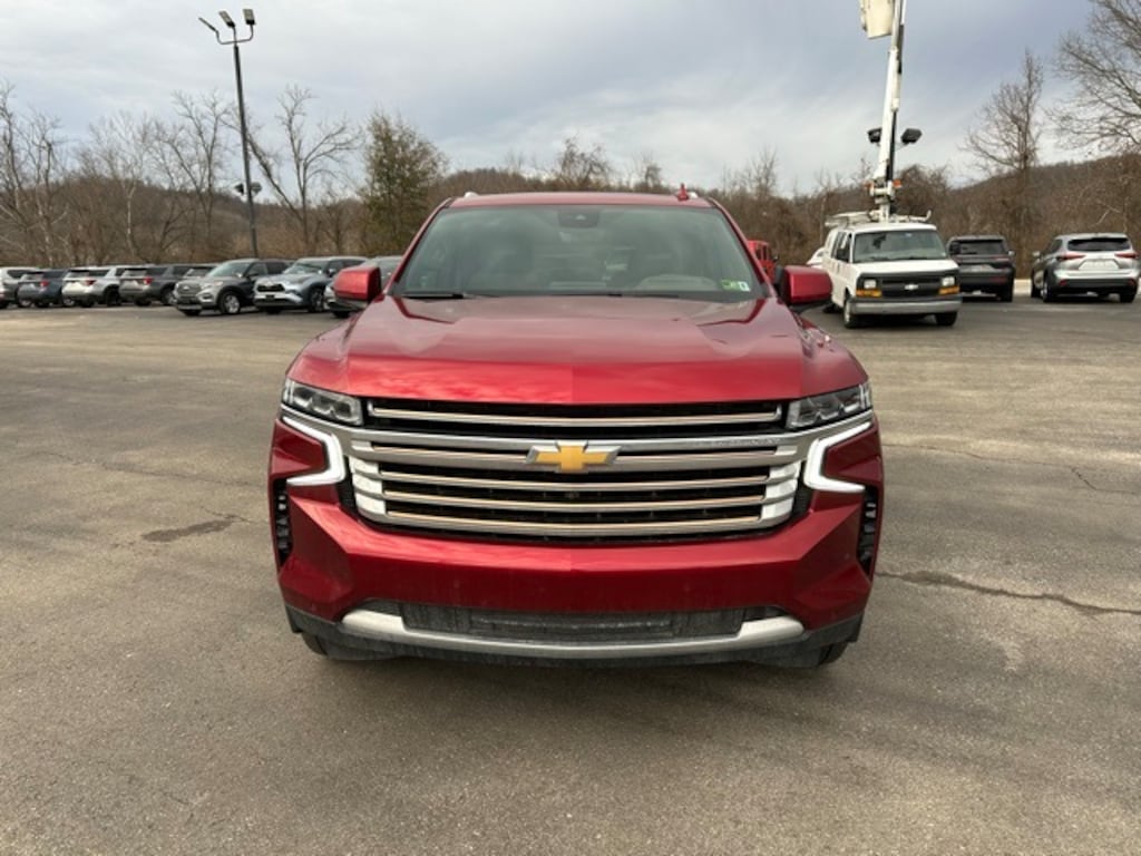 This 2024 Chevrolet Tahoe is well equipped with the following equipment...Advanced Technology Package (Enhanced Automatic Parking Assist, Reverse Automatic Braking, and Super Cruise), Advanced Trailering Package (Hitch View w/Pan/Zoom Image Adjustment, Integrated Trailer Brake Controller, Smart Trailer Integration Indicator, and Trailer Side Blind Zone Alert), Max Trailering Package (Extra Capacity Cooling System), Preferred Equipment Group 3LZ (15" Diagonal Multi-Color Head-Up Display, 1st & 2nd Row Color-Keyed Carpeted Floor Mats, 2-Speed Active Electronic AutoTrac Transfer Case, 3rd Row 60/40 Power-Folding Split-Bench Seat, Adaptive Cruise Control, Bose 10-Speaker Centerpoint Surround Audio Sys Ft, Bright Front & Rear Door Sill Plates, Chrome Door Handles w/Body-Color Strip, Color-Keyed Carpeting Floor Covering, Driver & Front Outboard Passenger Airbags, Dual Exhaust System, Enhanced Automatic Emergency Braking, Enhanced Driver Information Center, Floor Console, Hands-Free Rear Power Programmable Liftgate, HD Surround Vision, Heated 2nd Row Outboard Seats, Heated Steering Wheel, Hill Descent Control, Inside Rearview Auto-Dimming Rear Camera Mirror, Lane Change Alert w/Side Blind Zone Alert, LED Daytime Running Lamps, Memory Settings, Outside Heated Power-Adjustable Mirrors, Power Release 2nd Row Bucket Seats, Power Tilt & Telescopic Steering Column, Rear Camera Mirror Washer, Rear Cross Traffic Alert, Rear Pedestrian Alert, Remote Start, Safety Alert Seat, SiriusXM w/360L, Universal Home Remote, Wireless Charging, and Wrapped Steering Wheel), Tahoe High Country, 4D Sport Utility, EcoTec3 6.2L V8, 10-Speed Automatic with Overdrive, 4WD, Radiant Red Tintcoat, Jet Black/Mocha Leather, 10 Speakers, 12-Way Power Driver & Passenger Seat Adjusters, 1st, 2nd & 3rd Rows All-Weather Floor Liners (LPO), 3.23 Rear Axle Ratio, 3rd row seats: split-bench, 4-Wheel Disc Brakes, ABS brakes, Adaptive suspension, Air Conditioning, Air Ride Adaptive Suspension, Alloy wheels, AM/FM radio: SiriusXM with 360L, Apple CarPlay/Android Auto, Auto High-beam Headlights, Auto-dimming door mirrors, Auto-dimming Rear-View mirror, Auto-leveling suspension, Automatic temperature control, Black Roof Rack Cross Rails, Brake assist, Bumpers: body-color, Compass, Delay-off headlights, Driver & Front Passenger Heated & Ventilated Seats, Driver door bin, Driver vanity mirror, Dual front impact airbags, Dual front side impact airbags, Dual-Pane Power Panoramic Sunroof, Electronic Stability Control, Emergency communication system: OnStar and Chevrolet connected services capable, Exterior Parking Camera Rear, Four wheel independent suspension, Front anti-roll bar, Front Bucket Seats, Front Center Armrest, Front dual zone A/C, Front High-Back Reclining Bucket Seats, Front reading lights, Fully automatic headlights, Garage door transmitter, Heads-Up Display, Heated door mirrors, Heated Driver & Front Passenger Seats, Heated front seats, Heated rear seats, Heated steering wheel, Illuminated entry, Infotainment Display, Low tire pressure warning, Magnetic Ride Control Suspension, Memory seat, Navigation System, Occupant sensing airbag, Outside temperature display, Overhead airbag, Overhead console,