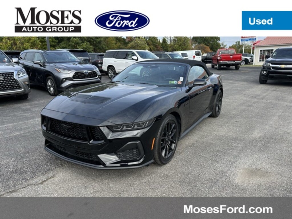 This 2024 Ford Mustang is well equipped with the following equipment...Equipment Group 401A High Package, Ford Co-Pilot360 Assist+ (Connected Built-In Navigation), Mustang Nite Pony Package, Security Package (Active Anti-Theft System, Locking Center Console, and Wheel Locking Kit), Mustang GT Premium, 2D Convertible, 5.0L V8 Ti-VCT, 10-Speed Automatic, RWD, Shadow Black, Carmine Red Leather, 3.55 Limited Slip Rear Axle, 4-Wheel Disc Brakes, 9 Speakers, ABS brakes, Active Valve Performance Exhaust, Air Conditioning, Alloy wheels, AM/FM radio: SiriusXM with 360L, AM/FM Stereo, Auto High-beam Headlights, Auto-dimming Rear-View mirror, Automatic temperature control, Brake assist, Bumpers: body-color, Climate Controlled Heated/Cooled Front Seats, Compass, Convertible roof lining, Delay-off headlights, Driver door bin, Driver vanity mirror, Dual front impact airbags, Dual front side impact airbags, Electronic Stability Control, Emergency communication system: 911 Assist, Exterior Parking Camera Rear, Four wheel independent suspension, Front anti-roll bar, Front Bucket Seats, Front Center Armrest, Front dual zone A/C, Front reading lights, Fully automatic headlights, Garage door transmitter, Glass rear window, HD Radio, Heated door mirrors, Heated front seats, Heated steering wheel, Illuminated entry, Knee airbag, Leather Shift Knob, Leather steering wheel, Low tire pressure warning, Occupant sensing airbag, Outside temperature display, Overhead console, Panic alarm, Passenger door bin, Passenger vanity mirror, Power convertible roof, Power door mirrors, Power driver seat, Power passenger seat, Power steering, Power windows, Radio data system, Rain sensing wipers, Rear anti-roll bar, Rear Parking Sensors, Rear window defroster, Remote keyless entry, Security system, SiriusXM w/360L, Speed control, Speed-sensing steering, Speed-Sensitive Wipers, Spoiler, Sport steering wheel, Start/Stop System (DISC), Steering wheel mounted audio controls, SYNC 4.0 QNX, Tachometer, Telescoping steering wheel, Tilt steering wheel, Traction control, Trip computer, Turn signal indicator mirrors, Variably intermittent wipers, Ventilated front seats, Voltmeter, and Wheels: 19" x 8.5" Shadow Silver-Painted Aluminum Want your customer experience to be as unrivaled as your next BMW? Discover the Difference at Moses BMW where friendly, professional associates simplify your buying experience and provide real value. See our Google and Cars.com reviews to hear why even out-of-state customers say they will drive over 500 miles again to experience our friendly and fast service. Call (304)722-4900 today to set your VIP appointment with one of our experienced managers to help you find your perfect match today.